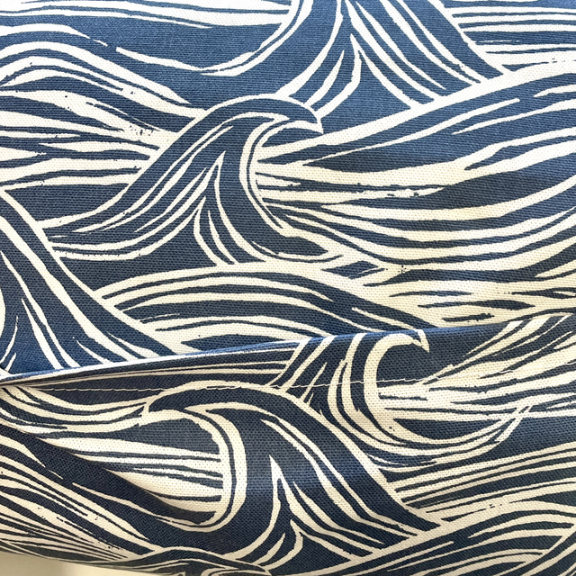 Navy Wave Print Rectangular Cushion